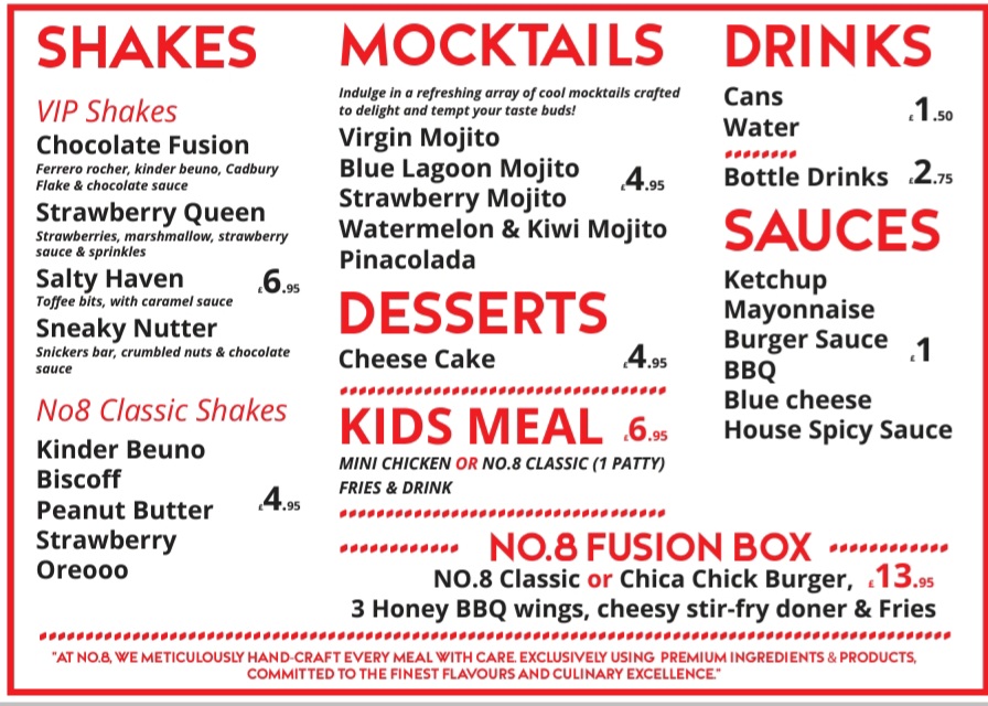 Welcome to No.8 Burgers, your ultimate burger haven located on St Stephens Rd in Norwich. This charming eatery is making waves with its mouthwatering menu that caters to every craving.